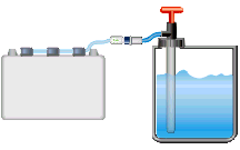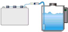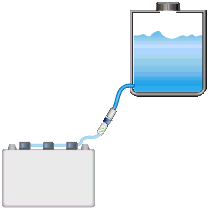 Note: Requires a hook or shelf to hold the tank. Fill speed will depend on the distance of the drop between the tank and the battery. The drop should at least 1.5 meters (5 ft). Mor drop results in faster filling.